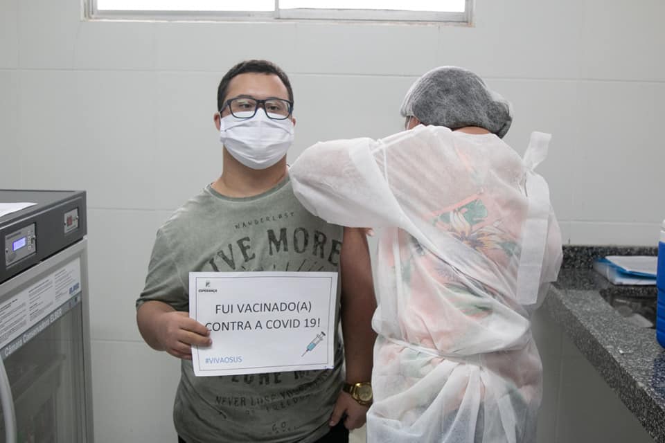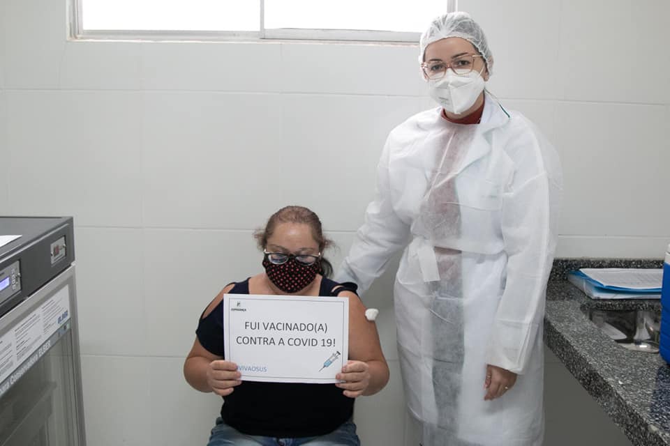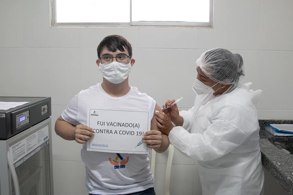 😍Nesta terça-feira, 04/05, foram imunizados contra a COVID-19 os alunos da Apae portadores de Síndrome de Down. Eles fazem parte do grupo prioritário, conforme orientação do Ministério da Saúde