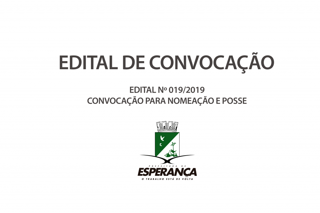 EDITAL Nº 019/2019 CONVOCAÇÃO PARA NOMEAÇÃO E POSSE