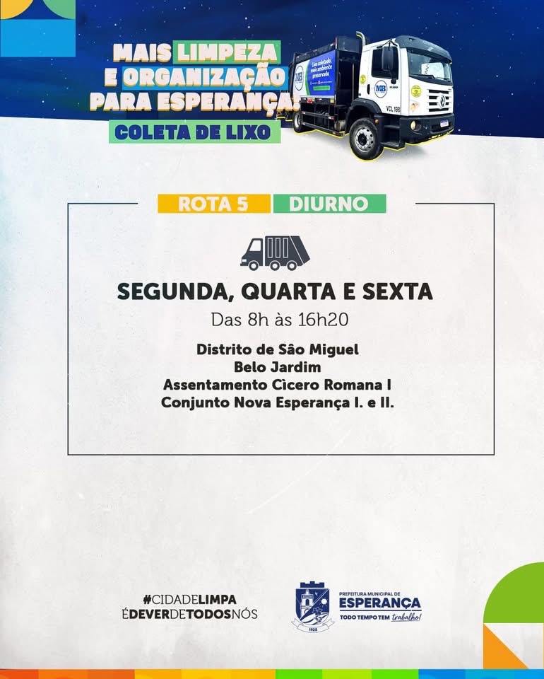 Respeitar os dias e horários da coleta é fundamental para manter nossa cidade limpa, organizada e saudável. 🌱✨