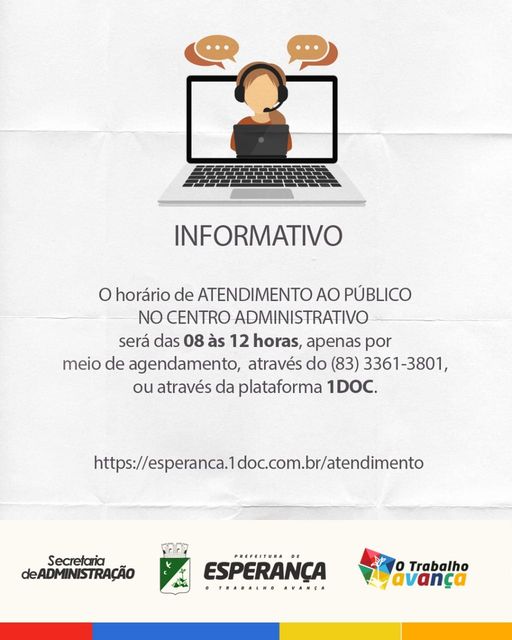⚠️O horário de funcionamento será das 8 às 12 horas para atendimento ao público, apenas por meio de agendamento.