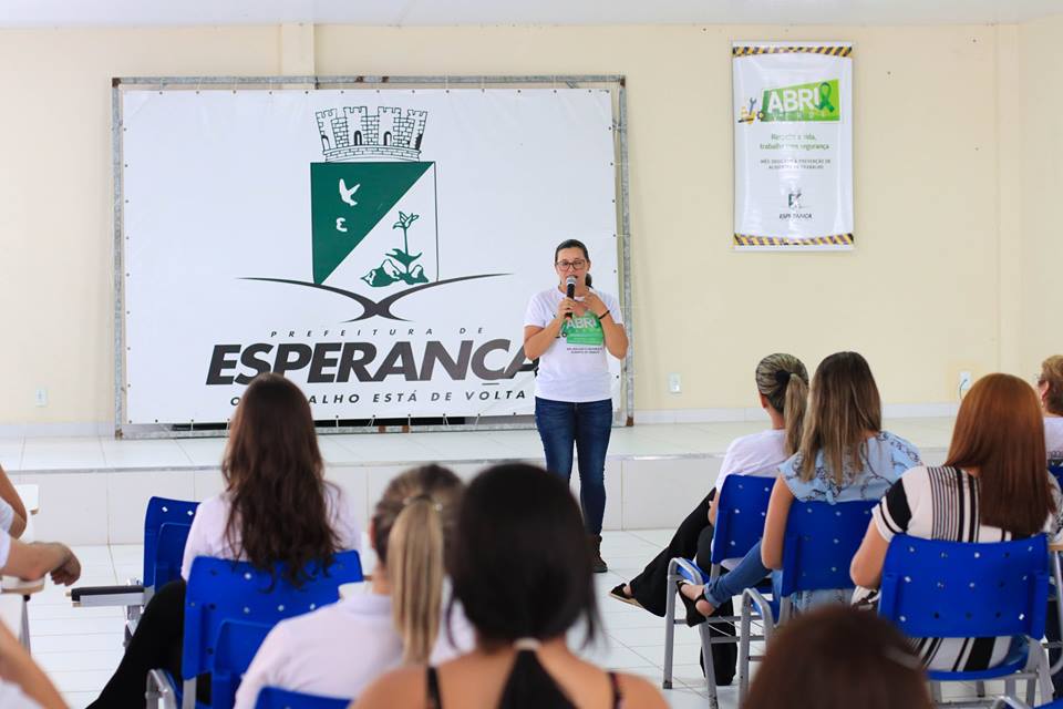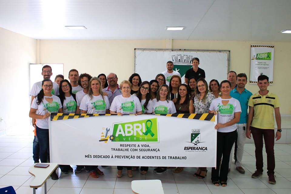 A Prefeitura Municipal de Esperança através da Secretaria de Administração realizou na manhã de hoje(03) o lançamento da Campanha Abril Verde. O Abril Verde é uma campanha de conscientização e orientação com o objetivo de prevenir acidentes e doenças do trabalho. Estiveram presentes representantes das diversas secretarias e servidores do município. "Prevenir é a melhor solução, o abril verde vem de forma construtiva orientar para a importância do conhecimento na prevenção de acidentes do trabalho. Um trabalho pioneiro que vem se destacando na gestão municipal" afirmou Méria Silva, Técnica de Segurança do Trabalho do município. A Secretária de Administração, Ângela Maria destacou a importância da Campanha Abril Verde e das atividades relacionadas a prevenção que serão trabalhadas durante todo o mês de abril, além de exames e orientações médicas para todos os servidores. A abertura também contou com a palestra da Fisioterapeuta Alianne Rachel Diniz Passos.