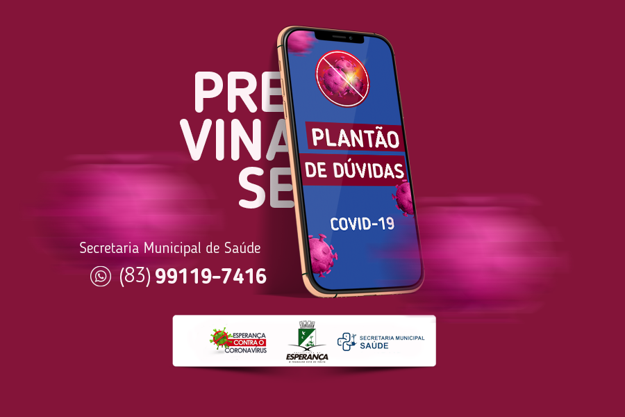 A Prefeitura de Esperança, por meio da Secretaria Municipal de Saúde (SMS), disponibiliza um número de WhatsApp para a população tirar dúvidas sobre o novo coronavírus e os sintomas da Covid-19. Para utilizar o serviço, basta salvar o número (83) 99119-7416 no celular. Assim que o cidadão enviar uma mensagem pelo aplicativo, ele receberá orientações sobre prevenção. A nova ferramenta faz parte da Central Humanizada de Orientações sobre Covid-19.