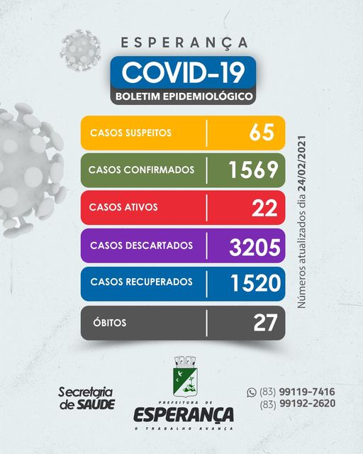 A Secretaria de Saúde de Esperança fez a atualização sobre o estado epidemiológico de Covid-19 no Município.📈