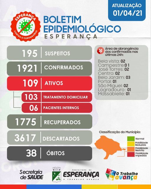 A Secretaria de Saúde de Esperança fez a atualização sobre o estado epidemiológico de Covid-19 no Município.📈