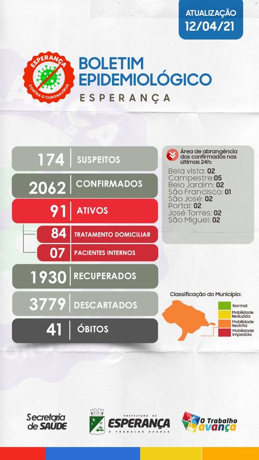 A Secretaria de Saúde de Esperança fez a atualização sobre o estado epidemiológico de Covid-19 no Município.📈