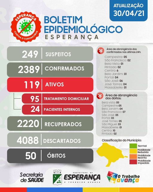 ⚠️Esclarecendo dúvidas da população, informamos ainda que o número de óbitos só é atualizado mediante a confirmação por parte do Governo do Estado de a causa da morte ser COVID-19. Mesmo que a população tenha informações de familiares, a Saúde não pode contabilizar antes de uma oficialização por meio de exame PCR que demora em média um mês. São os protocolos que precisam ser seguidos por uma questão de segurança e veracidade das informações.