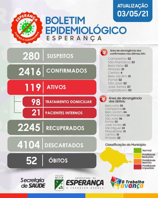 A Secretaria de Saúde de Esperança fez a atualização sobre o estado epidemiológico de Covid-19 no Município.📈