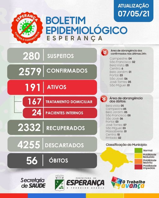 ⚠️Esclarecendo dúvidas da população, informamos ainda que o número de óbitos só é atualizado mediante a confirmação por parte do Governo do Estado de a causa da morte ser COVID-19. Mesmo que a população tenha informações de familiares, a Saúde não pode contabilizar antes de uma oficialização por meio de exame PCR que demora em média um mês.