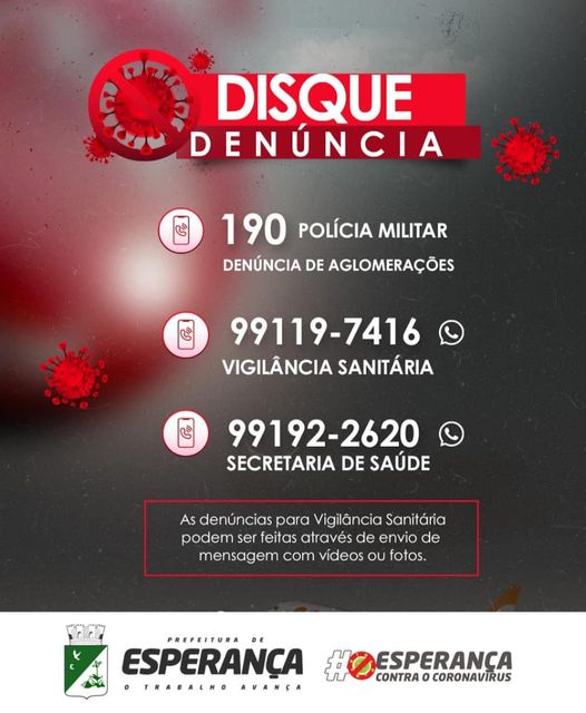 📌Entrou em vigor, em Esperança, novo decreto com medidas mais restritivas de combate à Covid-19, mas para surtir efeito precisamos da colaboração da população.