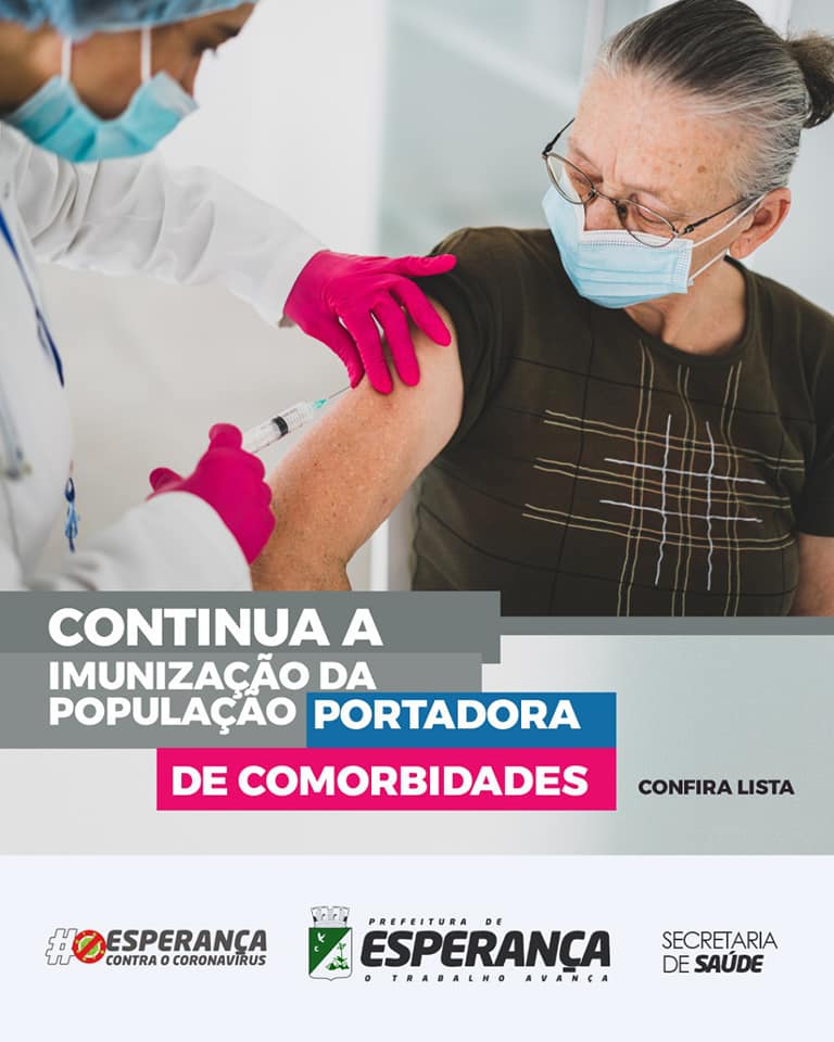 ⚠️Quem for portador de alguma das comorbidades elencadas pelo Ministério da Saúde deve procurar seu postinho de saúde para receber a vacina.