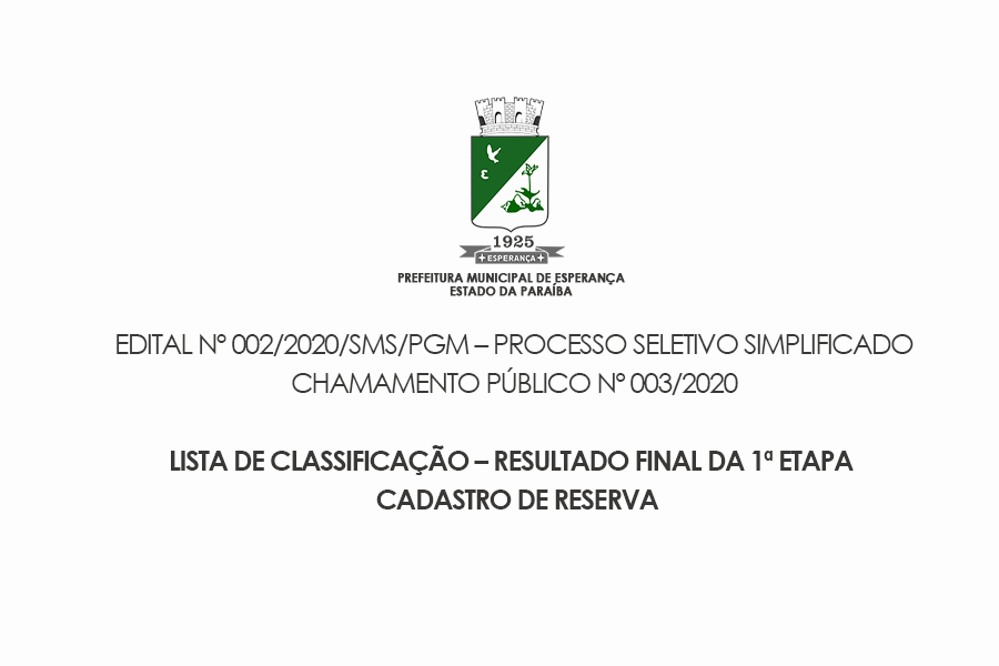 LISTA DE CLASSIFICAÇÃO – RESULTADO FINAL DA 1ª ETAPA CADASTRO DE RESERVA Link: https://bit.ly/2YLB0AR