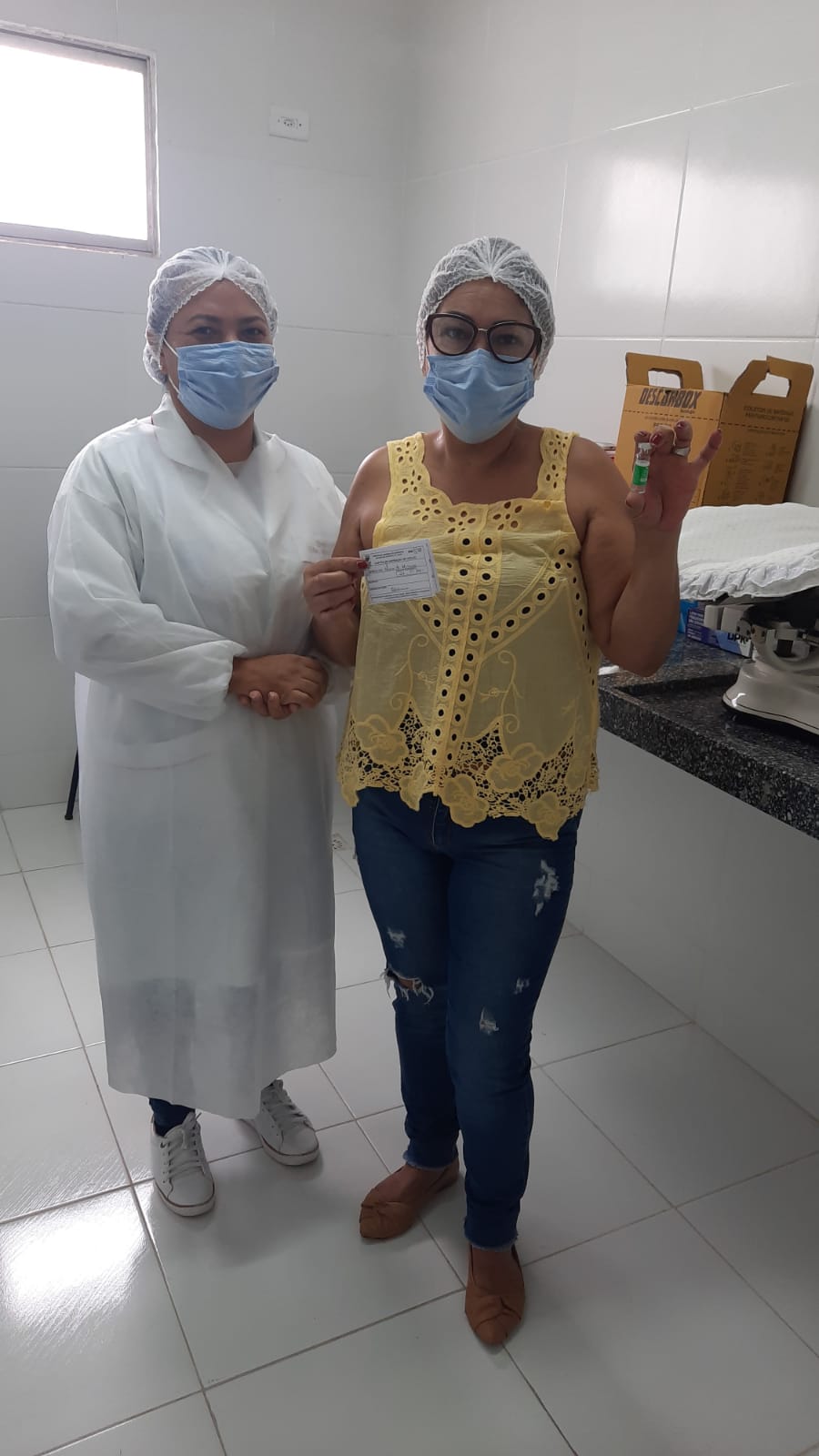 A Secretaria de Saúde continua vacinando os profissionais da linha de frente de combate ao Coronavírus. Dessa vez foram imunizados com a segunda remessa os servidores da Atenção Básica. São eles: vigilantes, serviços gerais e recepcionistas dos PSFs.👏 Conforme o Plano Nacional de Imunização, os profissionais de saúde são os primeiros a receberem as doses e, nas próximas remessas, serão os demais grupos de risco. A vacina é a maneira mais segura e cientificamente comprovada de controle da pandemia. Mas os cuidados e protocolos de segurança não podem ser relaxados. Prefeitura Municipal de Esperança- O trabalho avança!