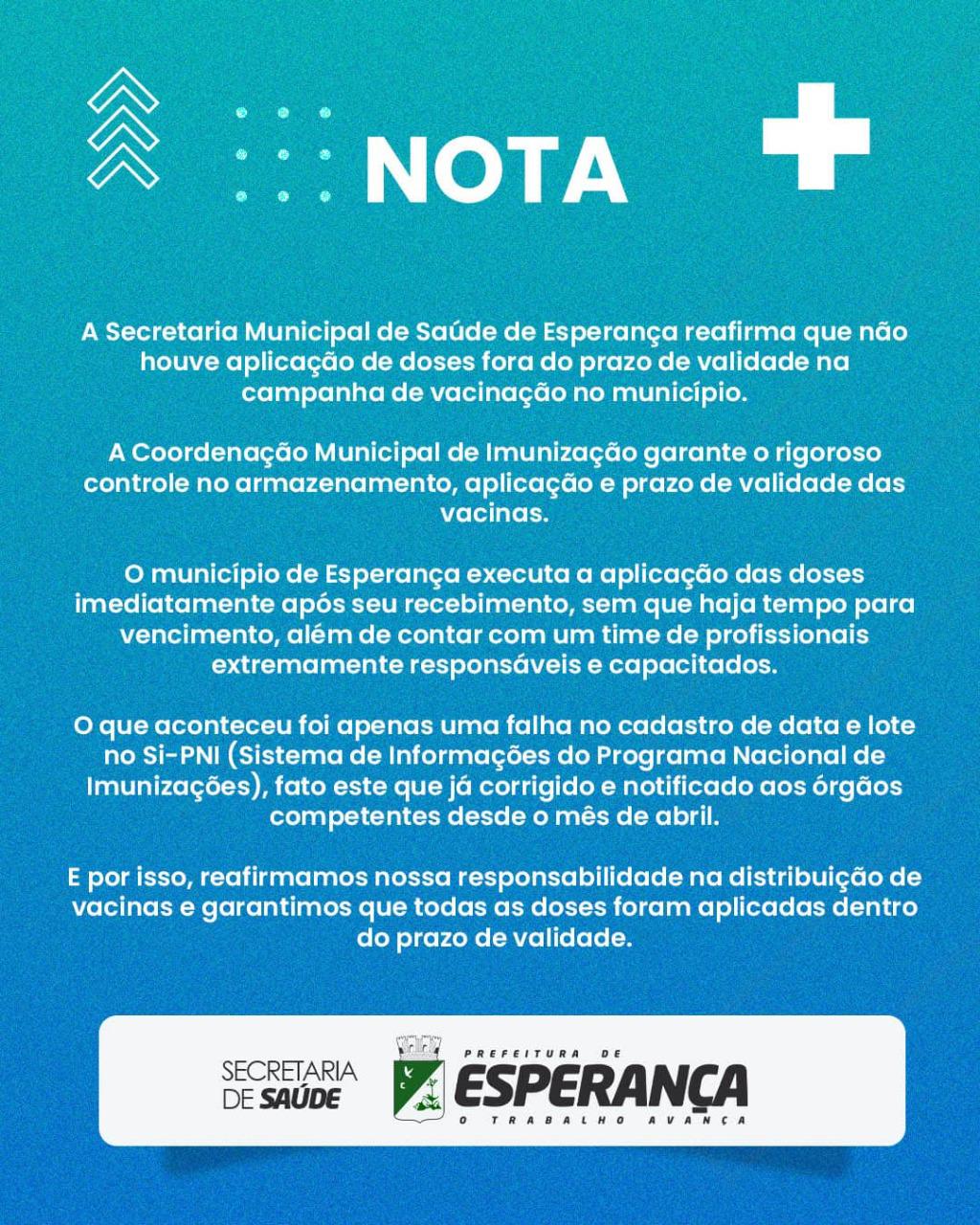 A Secretaria de Saúde comunica a todos os esperancenses que possui rigoroso controle de armazenamento das vacinas recebidas do Governo Federal.