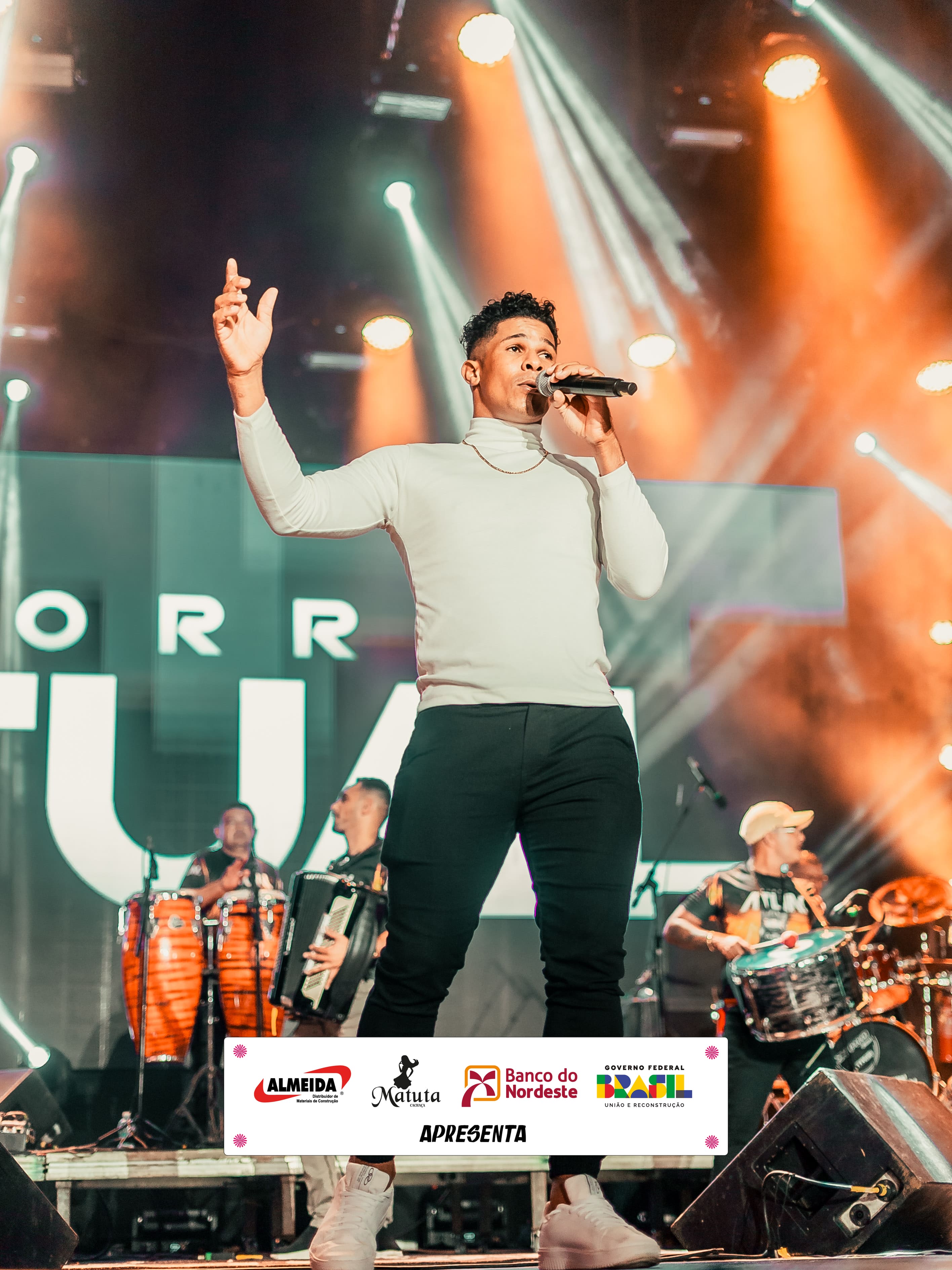 A noite começou com a apresentação da banda Forró Atual, prata da casa, que mostrou toda sua qualidade musical e aqueceu o público com um repertório animado e cheio de identidade. Logo em seguida, Fábio e Eliane, também artistas da terra, encantaram os forrozeiros com músicas apaixonadas e muito carisma.