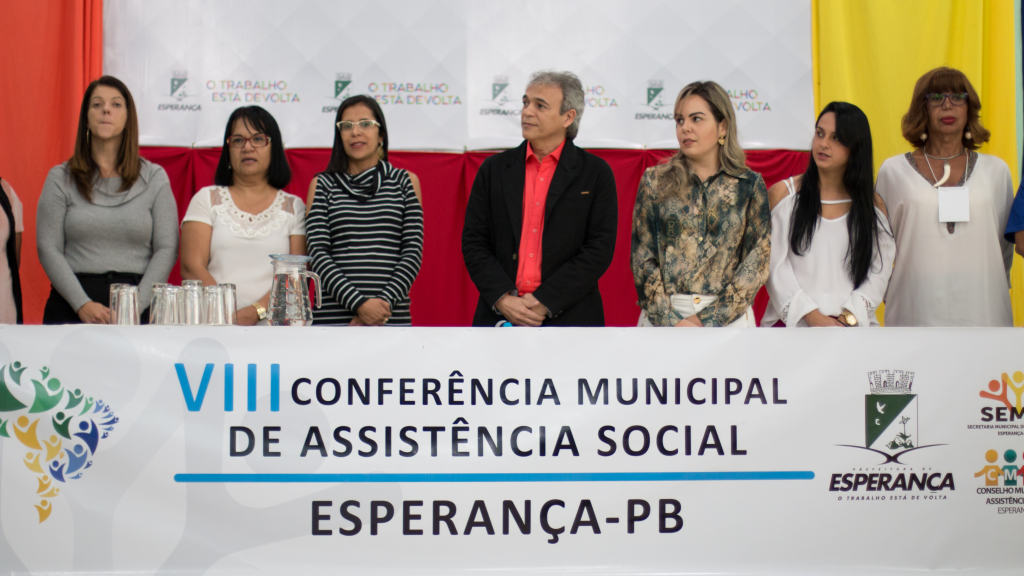 A VIII Conferência Municipal de Assistência Social cumpriu o seu propósito e reuniu na manhã de quinta-feira(20), membros do governo municipal, usuários e sociedade civil e Entidades não governamentais para definir as propostas que serão levadas à Conferência Estadual. Na ocasião, também foram eleitos os delegados que representarão a cidade de Esperança Durante a manhã, a presidente do Conselho Municipal de Assistência Social, Deborah Almeida, declarou a abertura da conferência. Em seguida, a secretária de Assistência Social, Taiana H. Grangeiro, falou da importância do evento apontando o que é possível fazer acontecer ao dar voz nossa população. O prefeito Nobson Pedro de Almeira reforçou o comprometimento com políticas públicas voltadas para a assistência social e destacou a importância do trabalho em equipe para alcançar objetivos que tragam melhoria para os esperancenses. A assistente social e palestrante Viviann Francisca Sales Fernandes discursou sobre o tema: "Garantia de Direitos no Fortalecimento do SUAS".