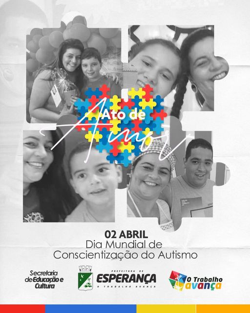 ❤️A Secretaria de Educação e Cultura, por meio da Coordenação Inclusiva, que desenvolve um trabalho nas escolas com Aparecida Alves e seus professores, presta uma homenagem a todos os autistas do município, neste dia 2 de abril, Dia da Consciência pela inclusão e contra todo tipo de preconceito. Prefeitura Municipal de Esperança - O trabalho avança!↗️ ✍️: Secretaria de Comunicação/ PME #PME #Educação #Inclusão #Autismo #RespeiteAsDiferenças