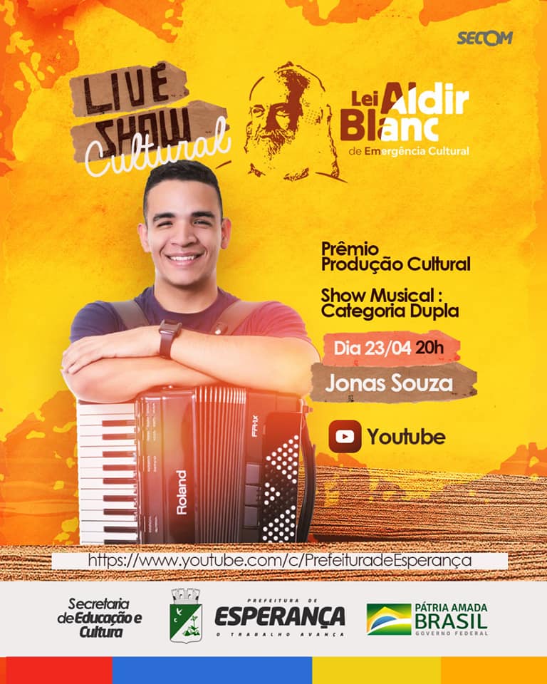 🎙️Mais uma sexta com música. Dois artistas premiados na Lei Aldir Blanc em Esperança se apresentam nesta sexta-feira (dia 23/04): Del Estilizado (categoria Dupla) e Jonas Souza (categoria solo). Ambos artistas foram premiados no edital de Produção Cultural na área de música. Sintonize-se canal do YouTube da Prefeitura Municipal de Esperança a partir das 19h. "É uma alegria para nossa cidade poder ouvir artistas da Música local dentro de nossas casas. Música boa nas quartas e sextas para todos munícipes e pessoas da região em geral", comentou André Oliveira, diretor de cultura de Esperança.