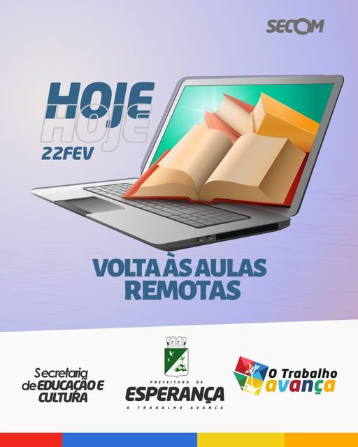Começa hoje, dia 22, o ano letivo 2021 em toda a rede municipal de ensino, zona urbana e zona rural na forma de ensino remoto (online).💻🖥️ 🔊A Secretaria de Educação e Cultura disponibiliza para interação com os alunos a plataforma Google Sala de Aula, aplicativo de mensagens WhatsApp e também atividades impressas para que nenhum aluno fique sem estudar. Procure a escola do seu filho para não ficar de fora! Educação Transformadora e Inclusiva se faz assim!👏 Prefeitura Municipal de Esperança-O trabalho avança!