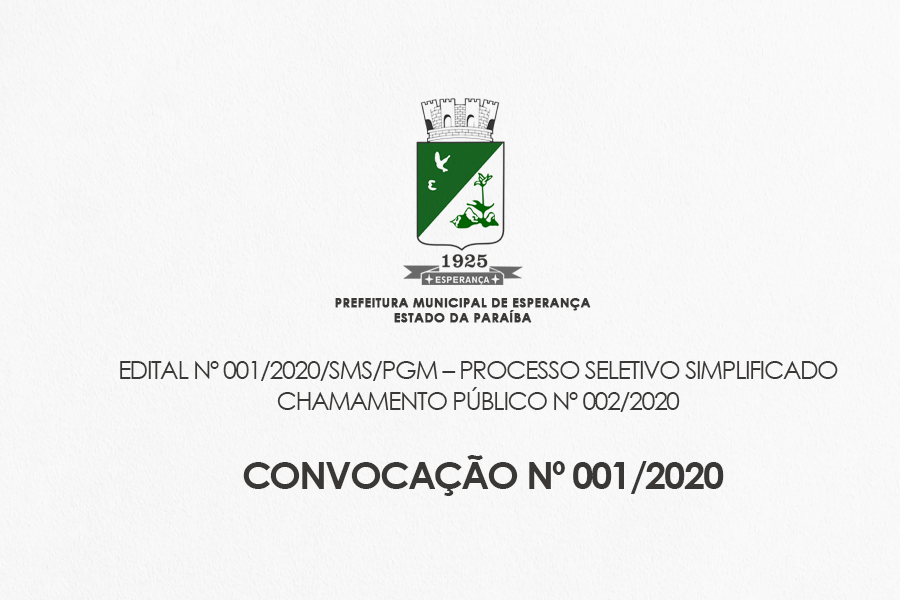 EDITAL Nº 001/2020/SMS/PGM – PROCESSO SELETIVO SIMPLIFICADO - CHAMAMENTO PÚBLICO Nº 002/2020 CONVOCAÇÃO Nº 001/2020