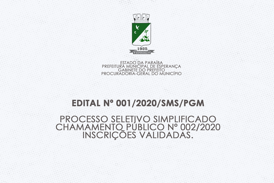 EDITAL Nº 001/2020/SMS/PGM – PROCESSO SELETIVO SIMPLIFICADO CHAMAMENTO PÚBLICO Nº 002/2020 INSCRIÇÕES VALIDADAS.