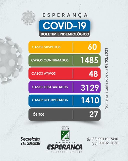 A Secretaria de Saúde de Esperança fez a atualização sobre o estado epidemiológico de Covid-19 no Município.📈
